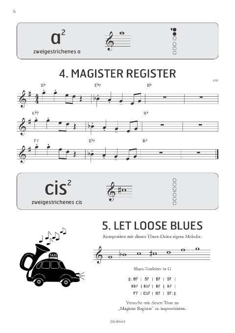 Die Saxophonschule SAXOPHONTAXI 2 macht schon beim Üben Spaß durch die zahlreichen bekannten Lieder und Popsongs. Sie ist klar und übersichtlich in sechs Abschnitte gegliedert, die je eine Dur-Tonart und die parallele Moll-Tonart behandeln. An sieben Haltestellen wird das Gelernte mit kleinen Übungen überprüft. Pop- und Gesangs-Artikulation werden eingeführt und geübt.